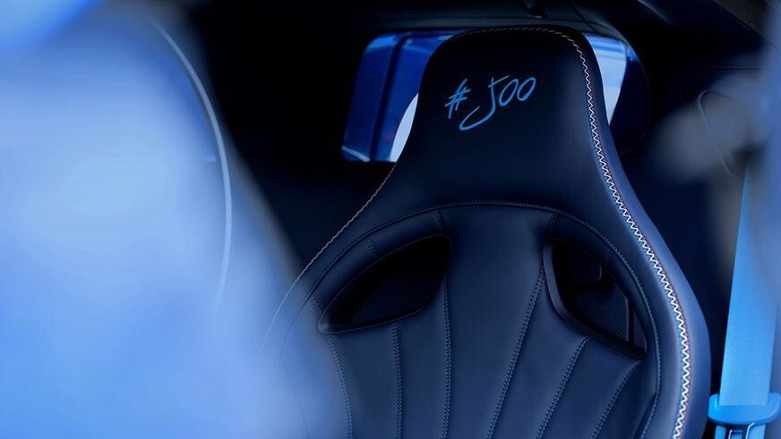 Chiron L’Ultime, как и все его предшественники, был собран вручную на фабрике в Мольсхайме. Основанный на 1600-сильной версии Super Sport прощальный экземпляр покрыт переливчатой лазорево-синей эмалью оттенков от French Racing Blue до Atlantic Blue, тогда как шильдики «500» снаружи и на крышке 8-литрового W16 указывают порядковый номер внутри серии.