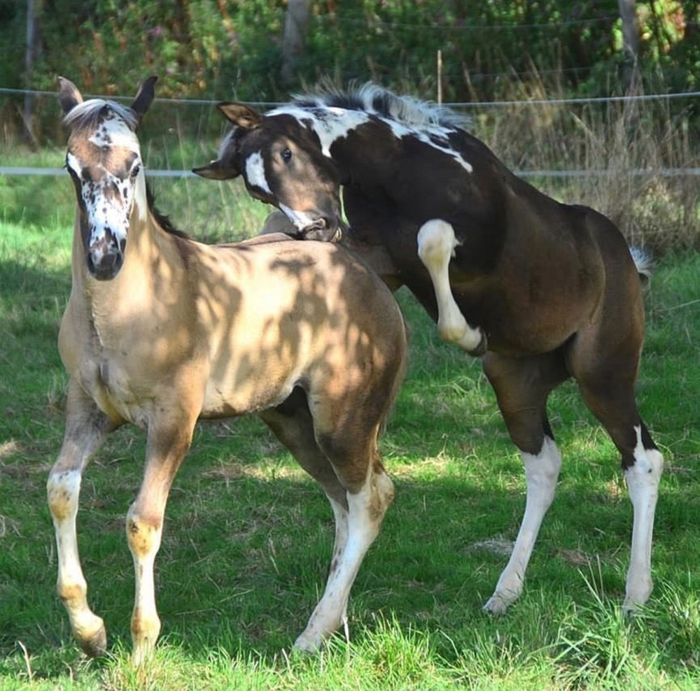 Когда же жеребёнок подрастет и окрепнет, он начнёт играть со сверстниками-подростками. У кобылок игры спокойные и мирные. А у жеребчиков любая игра перерастает в дружескую возню — они кусаются, лягаются и валят друг друга наземь. Так они оттачивают будущее мастерство поединка. У взрослых жеребцов драки уже нешуточные.