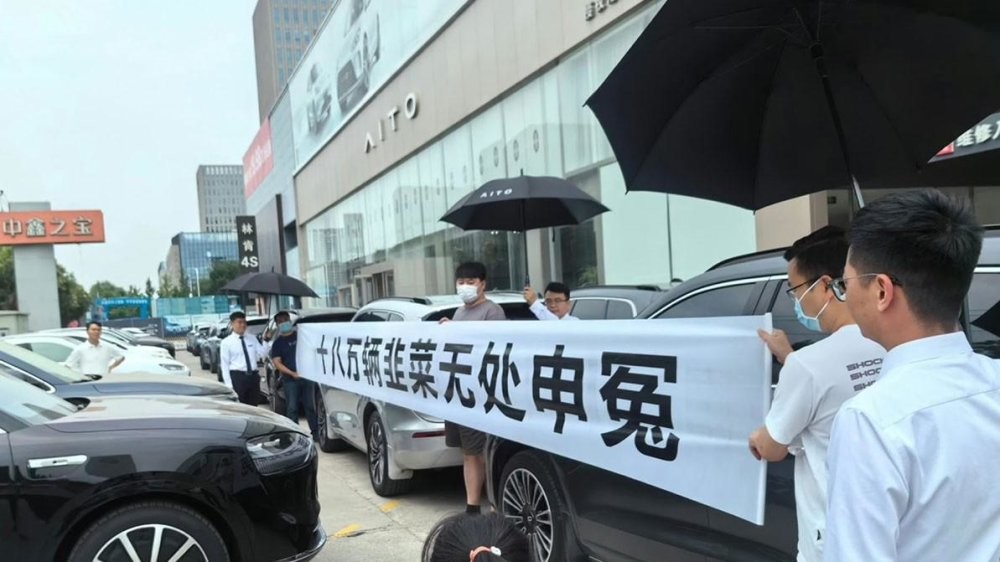 В китайской соцсети Weibo завирусились фотографии с акции протеста, которую владельцы Aito M7 устроили около одного из дилерских центров в Ухане. Они растянули ленты с лозунгами, из которых стали понятны основные причины их недовольства. Главная — слишком скорый рестайлинг гибрида на фоне длительных сроков ожидания поставок.