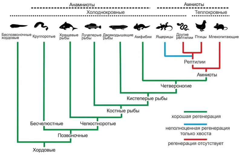 Переселение позвоночных из воды в наземно-воздушную среду жизни стало поворотным моментом в истории биосферы. Однако этот эволюционный скачок имел и серьезные побочные эффекты: он привел к потере способности восстанавливать потерянные части тела рептилиями, птицами и млекопитающими.