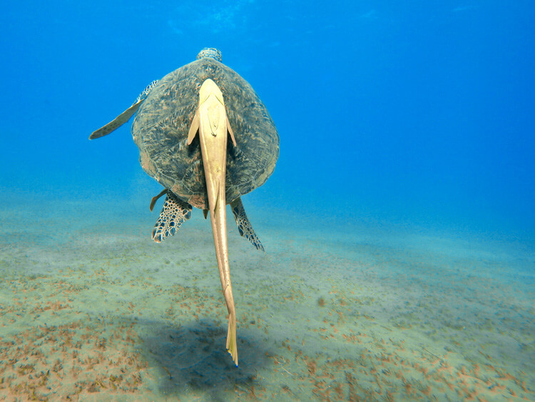 Прилипала не переживает за опасную близость к пасти хищника. В желудках акул никогда не находят остатки ремор. А значит, они ими не питаются. Хотя еда буквально находится у них под носом!