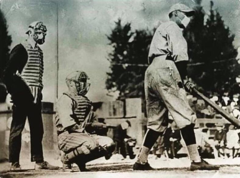 Когда собакам всё же надевали маски, это воспринималось как шутка. «Считается, что это первая игра в масках», - трубила одна газета, когда две команды встретились в Пасадене, Калифорния, в начале 1919 года. Судьи, игроки, зрители и собака-талисман собрались на игру в масках изо льна и марли.