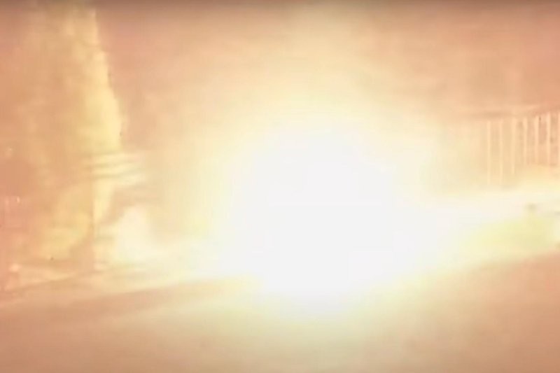 На записи пожар выглядит сильным, но он повредил только припаркованные автомобили.