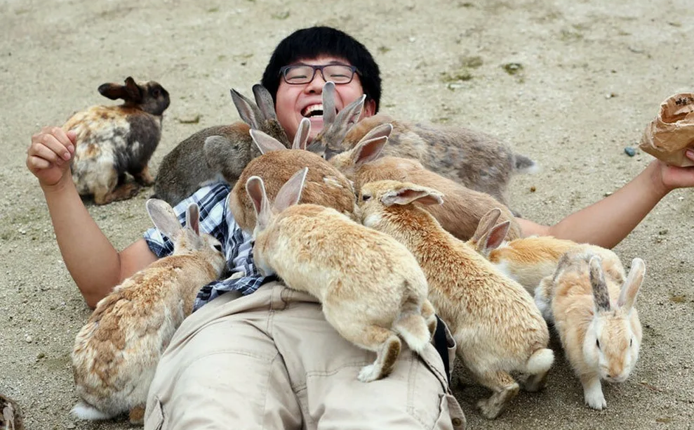 В Японии есть остров, на котором живут просто тысячи кроликов! Еще больше, чем кошек на кошачьем острове, еще больше, чем оленей в Наре. Не удивлюсь, если у них для каждого вида животных есть свой остров, просто они не про всё рассказывают.