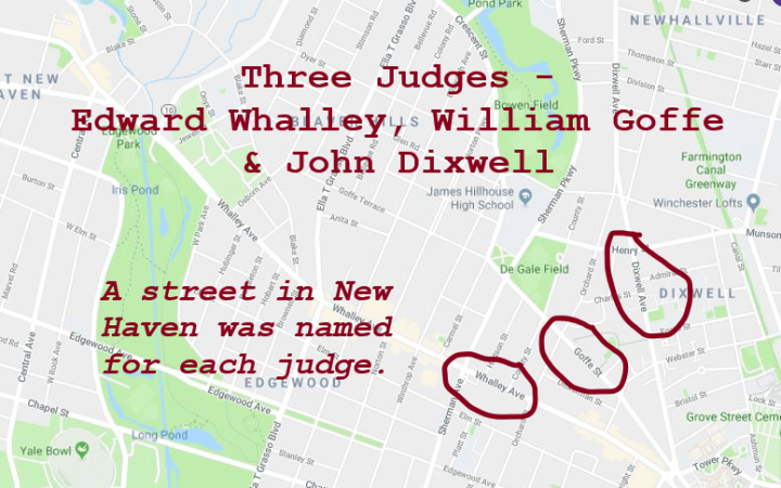 В честь печально известных беглецов небольшой грот назвали «Пещерой судей». Тропинке, ведущей к пещере, дали громкое и довольно пафосное название «Тропа цареубийц». Три расходящиеся в стороны от центра Нью-Хейвена улицы были названы в честь судей.