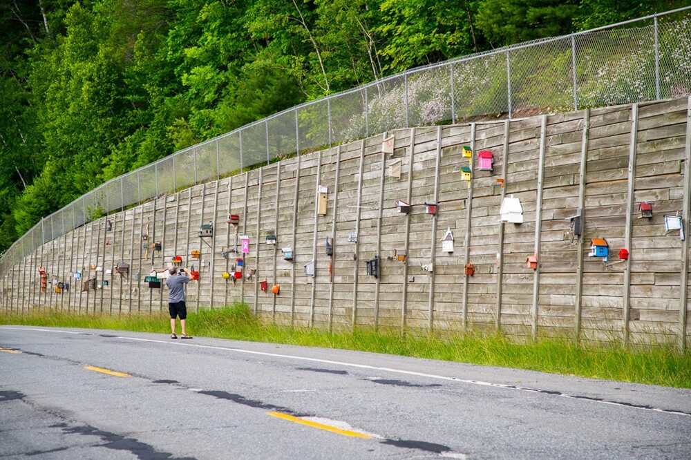 Удивительная коллекция скворечников сделана из самых разных материалов и раскрашена в самые разные цвета, начиная от приглушённых естественных и заканчивая яркими и кричаще-вычурными. Некоторые домики для птиц более традиционны и сделаны из дерева, при создании других авторы явно проявили креатив. Они из номерных знаков, касок и банок из-под кофе. Скворечники уникальны не только благодаря используемым материалам, но и своему стилю. Один напоминает бревенчатый домик, другой – бригантину с парусом, третий – церковь. На этом участке шоссе есть даже скворечник-отель и пафосный Белый дом.