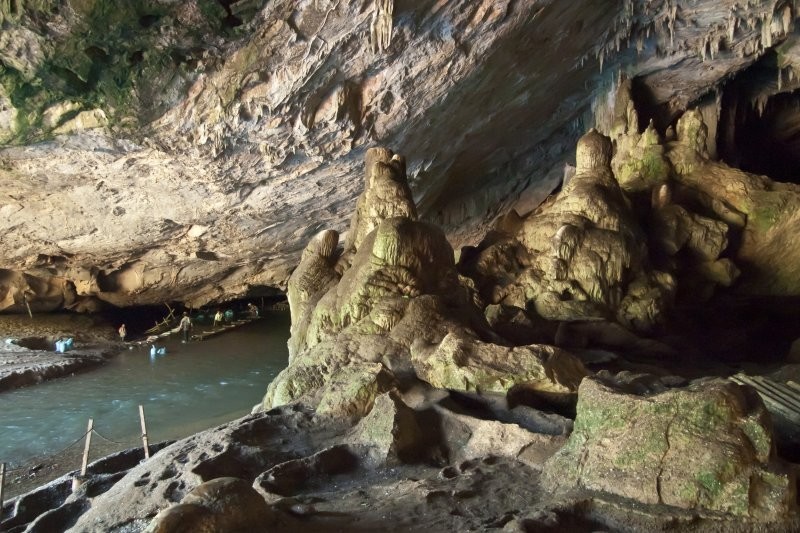 Пещера рыб, как её ещё называют, это настоящее шоу сталактитов и сталагмитов. Хоть немое и застывшее. На его создание потребовались миллионы лет. В разные моменты путешествия, в зависимости от времени года, гиды останавливаются, чтобы дать туристам возможность ступить на грязную землю и скользкие бамбуковые проходы, чтобы поближе рассмотреть скальные образования. Их высота может превышать 200 метров.