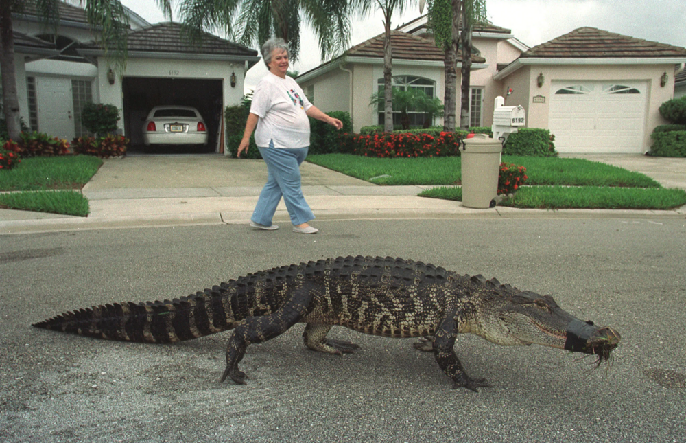 Тысячи аллигаторов свободно гуляют по улицам Флориды, но здесь их не боятся. Привыкли жить мирно.
