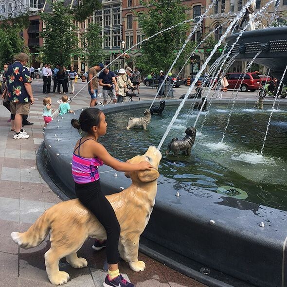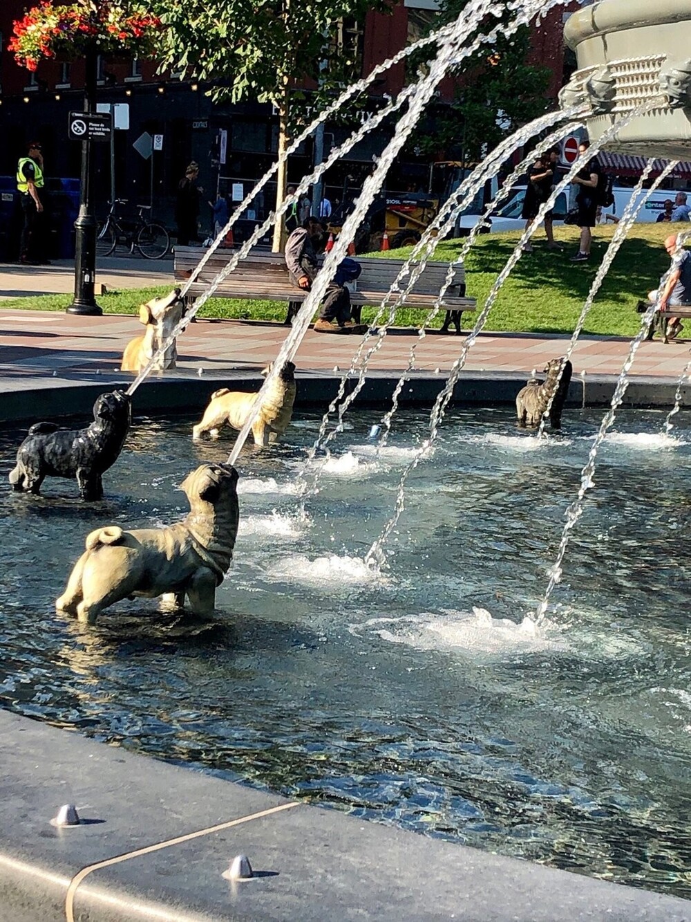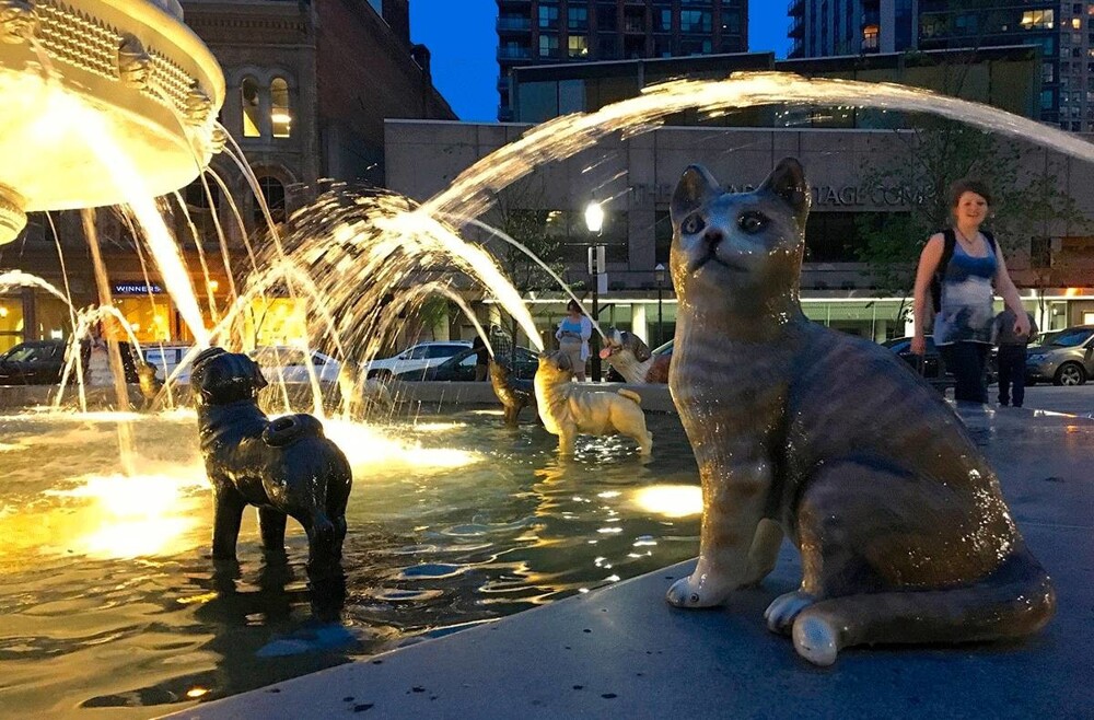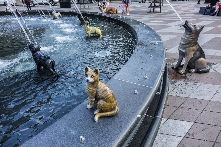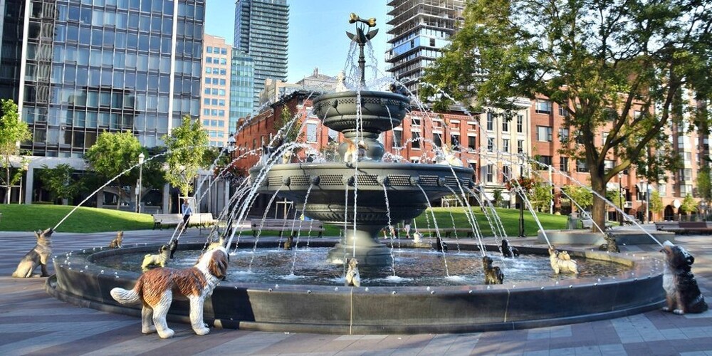 За зданием FLATIRON в Торонто расположен причудливо украшенный фонтан, посвящённый лучшему другу человечества. Фонтан – благодарность четвероногим посетителям, которые часто бывают в этом районе. В нём хвостатые друзья могут спокойно искупаться, поплескаться и освежиться. Впрочем, всем другим тоже не возбраняется это сделать, но не каждый рискнёт из соображений гигиены.