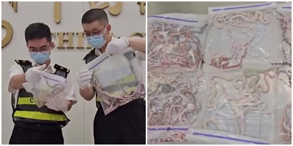 Китаец пытался незаконно перевезти в штанах около 100 змей (2 фото + 1 видео)