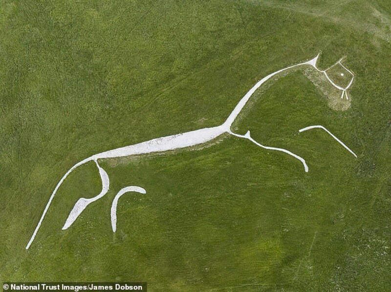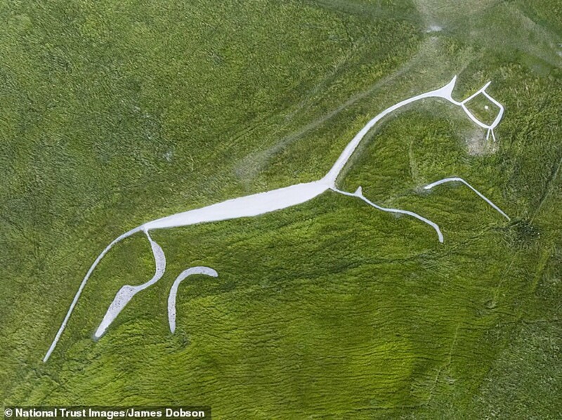 Оксфордшир, Англия. Археологам удалось вернуть первоначальный вид легендарной Уффингтонской белой лошади — самой старой меловой фигуре в Британии, возраст которой превышает 3000 лет.