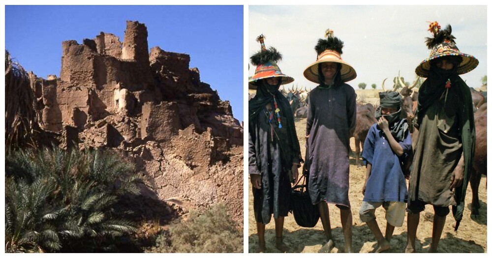 Канури, сейчас живут в соседней пустынной деревне Чирфа. Но они каждый год возвращаются на место своих предков, чтобы собрать урожай фиников. Странно, но финиковые пальмы почему-то сохранились, неплохо себя чувствуют и плодоносят.