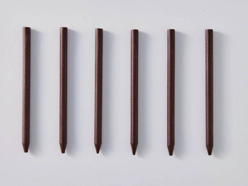 Грифели диаметром 5,6 мм подходят ко всем автоматическим карандашам. Каждый стержень изготовлен их отходов кофейного производства — в кофейную гущу добавляют специальные связующие вещества, которые позволяют кофейным частичкам плотно держаться вместе и равномерно наноситься на бумагу. Состав максимально простой: 20% переработанного кофе и 80% клея и воска.
