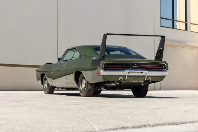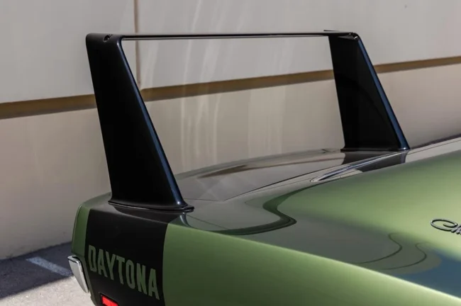 Аукционный дом отдельно отмечает, что в мире неизвестно о других Dodge Charger Daytona с таким сочетанием внешней и внутренней отделки — и кузов, и интерьер спорткара выполнены в зелёных тонах. Несколько лет назад автомобиль пережил глубокую реставрацию.