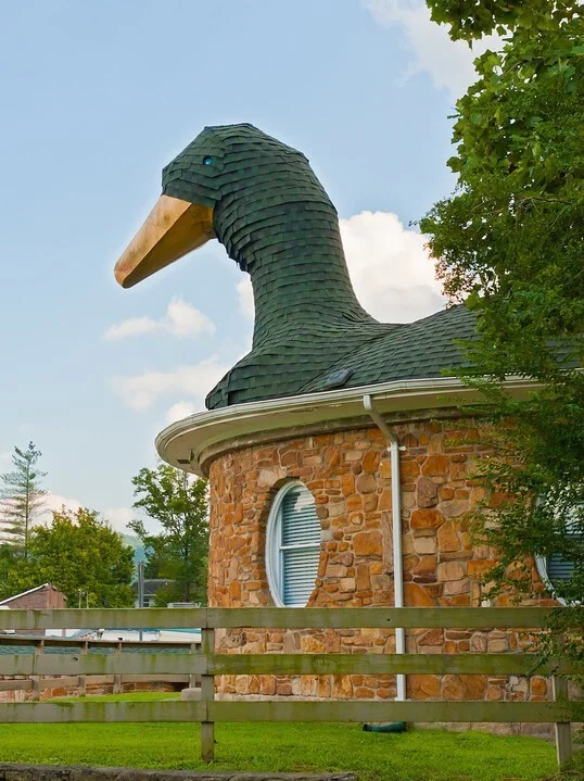 Джордж Стейси начал строить этот уникальный дом в Хазарде, штат Кентукки, в 1935 году. Прежде чем приступить к работе, он охотился на настоящего гуся, чтобы использовать его скелет в качестве чертежа. Стейси потратил годы на строительство своего необычного творения, живя с женой в старой хижине неподалёку от места строительства, пока здание не было завершено в 1940 году. В доме, где было три спальни, гостиная, кухня, ванная, столовая, супруги и четверо их детей жили долгие годы. Позднее к нему была пристроена бакалейная лавка и заправка. Долгое время здание использовалось в качестве отеля.