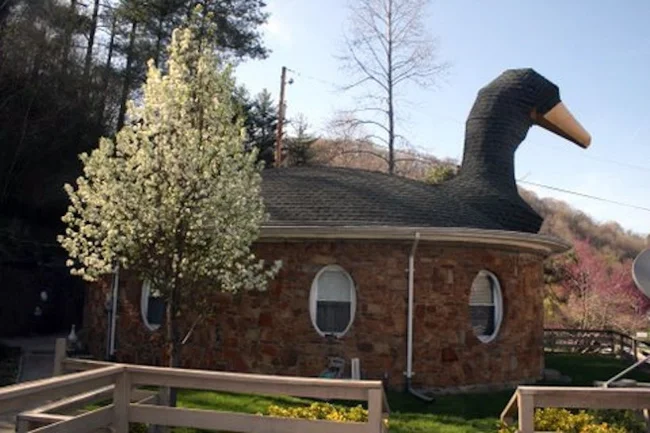 Вдохновившись детскими воспоминаниями и глядя на упитанную тушку гуся, которую его жена Олли собиралась запечь на День благодарения, житель города Хазард, что в Кентукки, Джордж Стейси задумался о создании необычного дома. Дело было в далёком 1930 году. И только спустя 5 лет идея начала воплощаться в реальность: мужчина приступил к строительству дома в виде гнезда, в котором восседала гигантская гусыня.