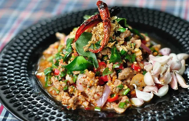 Кои Пла – это такой свежий салат, но суть в том, что его главный ингредиент – фарш из сырой рыбы, сбрызнутой лимонным соком и приправленный специями. Сырая рыба, казалось бы, что могло пойти так?