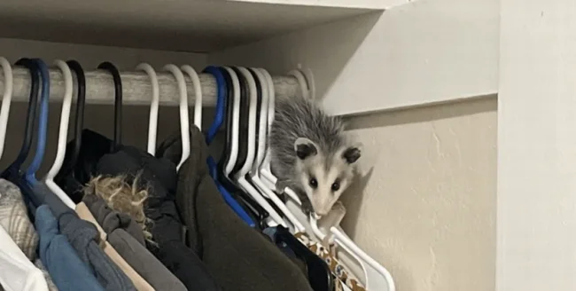 Она не видела, как опоссум попал в дом, но предполагает, что зверь проник через дверной проем для домашних животных.