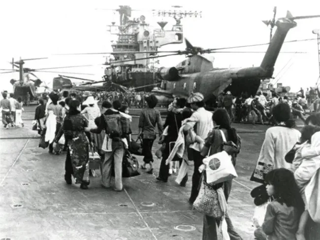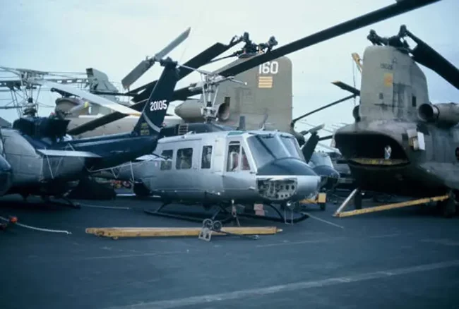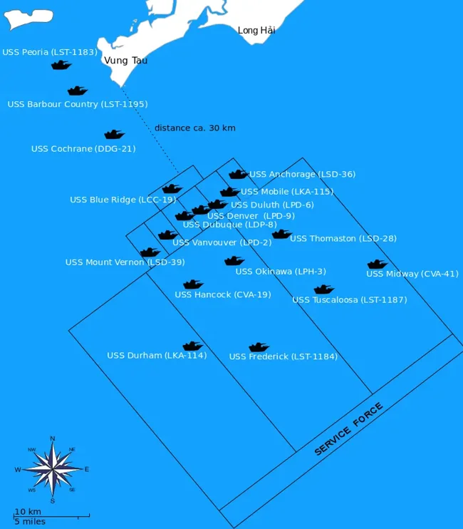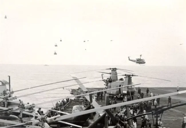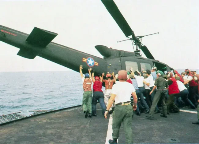 В операция «Порывистый ветер» – последней фазе, когда аэродромы Сайгона стали недоступны, вывоз людей начался вертолетами. Для этого в городе были назначены несколько точек сбора эвакуировавшихся, а в море, собралась специально организованная оперативная группа Task Force 76.