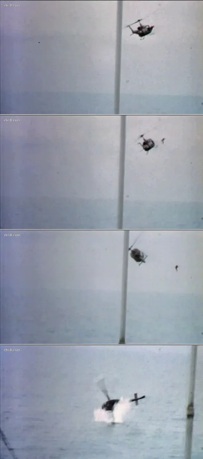 Некоторым вертолетам было приказано высадить пассажиров, взлететь и совершить «контролируемую посадку на воду». Выглядело это так -