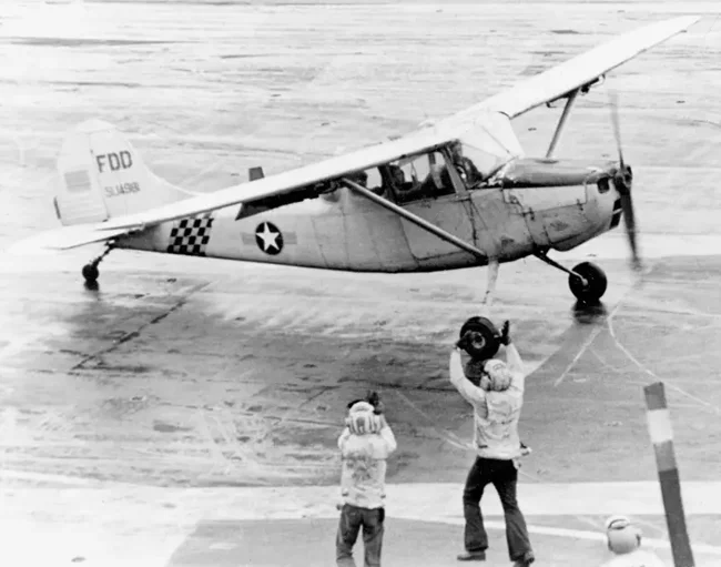 Та самая «Cessna» сейчас находится в Национальном музее морской авиации США. Единственная, которая села на борт авианосца.