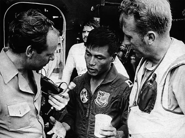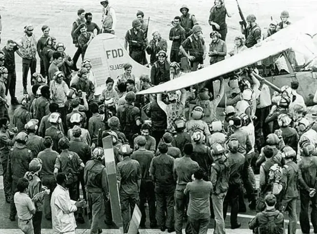 29 апреля 1975 года около полудня на авианосец USS Midway даже сел легкомоторный двухместный самолет Cessna O-1E Bird Dog. За штурвалом находился майор Ly Bung, командир 114-й разведывательной эскадрильи южновьетнамских ВВС, дислоцированной на острове Con So в 100 км от побережья. По воспоминаниям майора, он знал о том, что где-то в море находятся корабли, готовые принять беженцев, но их точное расположение ему не было известно. Взлетев, он направился в общем направлении на север, и тут ему повезло: он увидел «вереницу вертолетов», явно направляющихся к какой-то знакомой им цели, и пристроился за ними.