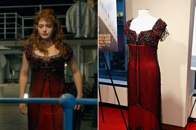 Красное платье, в котором Роуз собиралась броситься с борта и была спасена героем Леонардо ди Каприо, Джеком, попало на аукцион в 2012 году и было продано анонимному покупателю за $330 000.