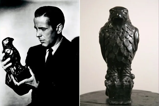 Таинственная мальтийская статуэтка сокола, за которой гонялся детектив Сэм Спейд в исполнении Хэмфри Богарта в знаменитом "Мальтийском соколе", долгое время считалась пропавшей. Ее пластиковые копии неоднократно всплывали на рынке и предлагались фанатам за большие деньги. И вот, наконец, в 2013 году на аукционе была выставлена оригинальная металлическая статуэтка весом в 20 килограммов - та самая, со съемок. Неизвестный поклонник Богарта отдал за нее $4,1 миллиона.