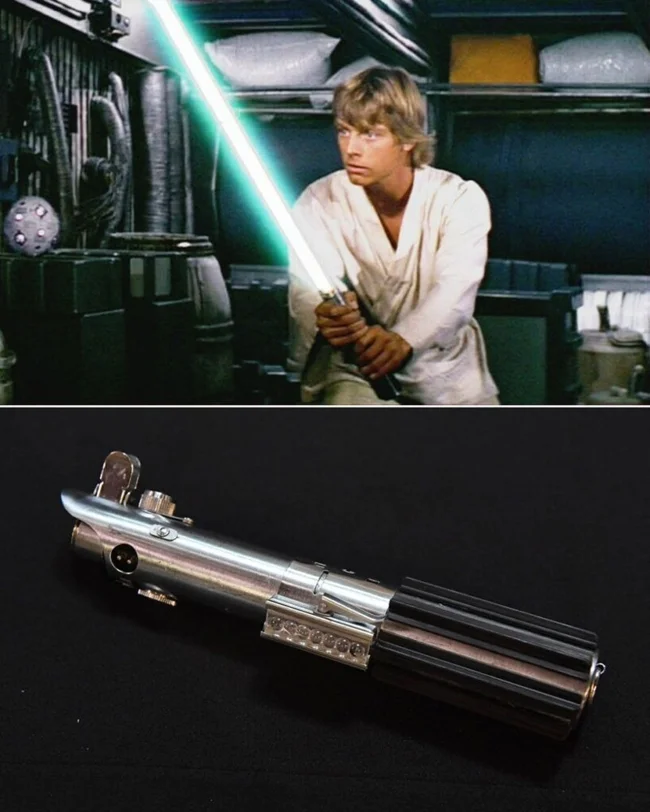 В 1970-х, когда снимались первые серии "Звездных войн", о компьютерных технологиях мало кто слышал. Реквизит на съемочной пощадке "Звездных войн" делался из подручных материалов фантазией создателей саги и сильно уступал по качеству тем космическим игрушкам, которые сегодня продаются в магазинах. Так, оригинальный меч Люка Скайуокера был сделан из покрашенной светоотражающей краской деревяшки и осветительной стойки от старой фотокамеры. Но любовь не измеришь деньгами: в 2008 году какой-то фанат "Звездных войн" купил этот меч на аукционе, отдав за него $240 000.
