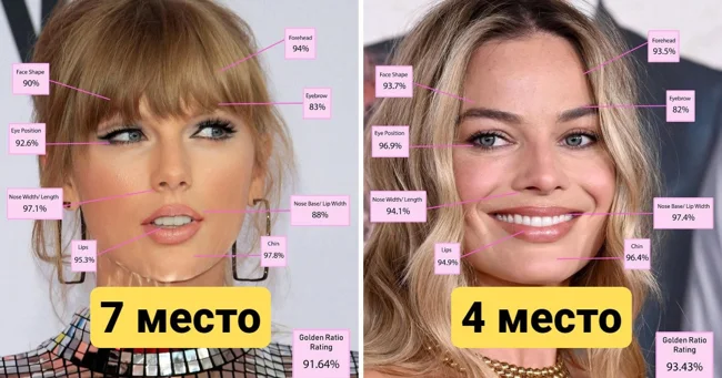 Как часто бывает в таких топах, список участниц (особенно первые места) выглядит подогнанным под стремление упомянуть самых раскрученных прямо сейчас, поэтому здесь много спорных позиций. Давайте полюбуемся на список, узнаем победительницу, то есть самую красивую женщину-знаменитость 2024 года, согласно науке, и посмотрим, насколько близки к идеалу каждый из элементов внешности участниц в процентах.