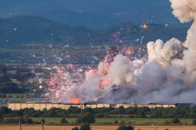 ЧП произошло вчера вечером. Склад, который находится у дороги, соединяющей город Елин-Пелин и деревню Гара-Елин-Пелин, сначала загорелся, а потом там начались взрывы. По словам министра внутренних дел, авария случилась после окончания рабочего дня. По некоторым сведениям, что-то пошло не так при транспортировке пиротехнического оборудования.