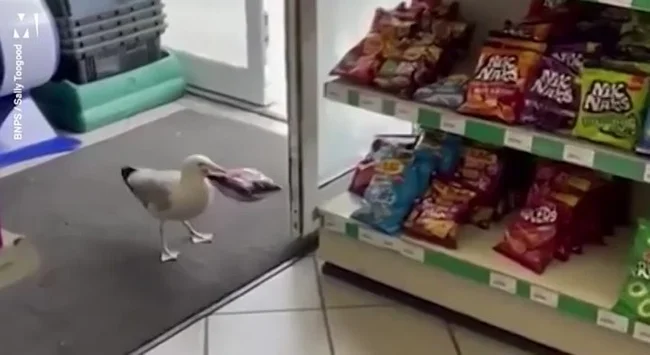 В Великобритании чайке официально запретили приходить в магазин, потому что она постоянно воровала чипсы (2 фото + 1 видео)