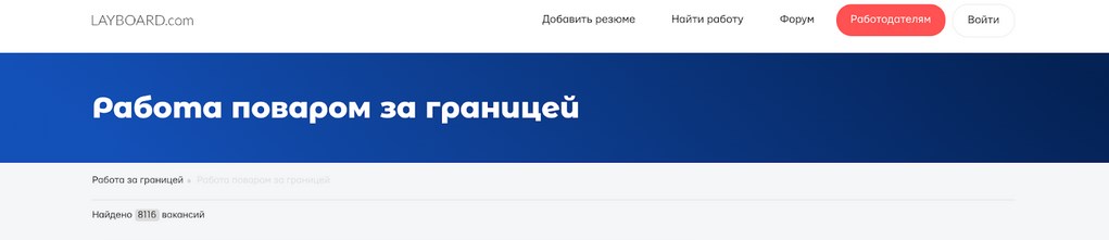 Подыскивая работу поваром, точно нужно обратить внимание на универсальные сайты, как Layboard.com.