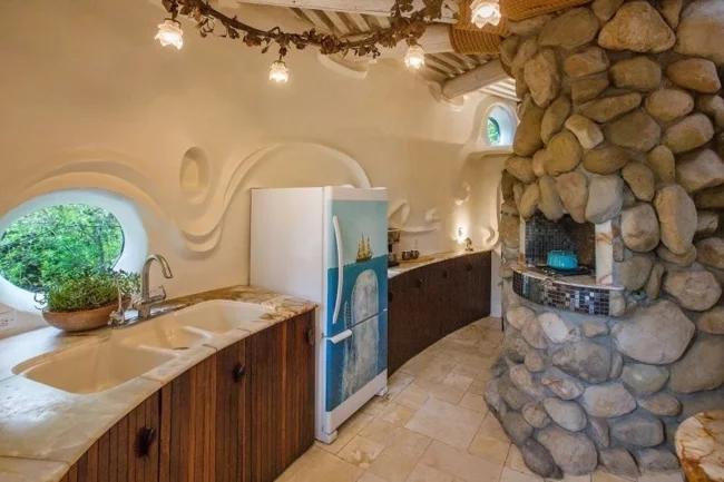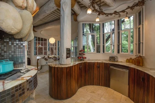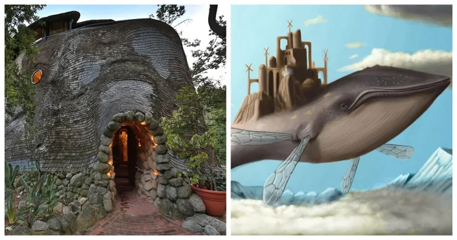 В «Доме кита» нет плоских стен и практически нет прямых линий. Три спальни (в которых могут разместиться девять человек) и 3 ванные комнаты позволяют людям комфортно жить в животе морского существа.