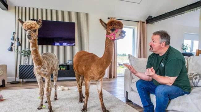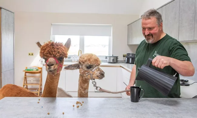 Дэнни купил двух альпак 14 лет назад после того, как потерял работу. Когда мать отказалась от Энни, ему пришлось кормить малышку из бутылочки каждые два часа — благодаря этому между ними возникла тесная связь. Даже когда у Энни родился первенец Бейли, которому уже два года, она все равно не захотела покидать родной дом.