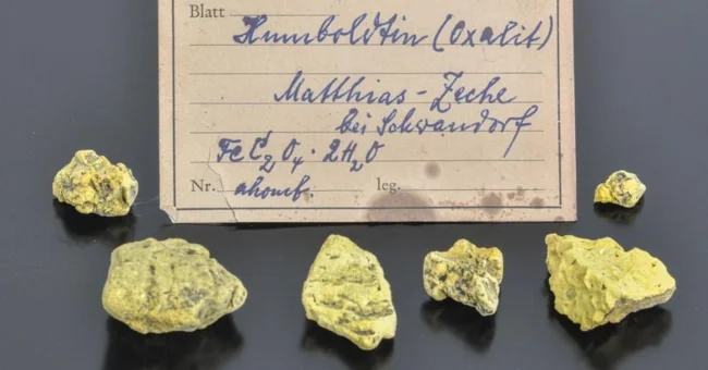 В ходе стандартной оцифровки обширной коллекции минералов сотрудники Баварского агентства по охране окружающей среды (LfU) в Германии обнаружили один из самых редких в мире минералов — гумбольдтин. Эта неожиданная находка появилась благодаря хранившемуся в ящике рукописному письму 1949 года, в котором говорилось о наличии гумбольдтина в угольных пластах близ Швандорфа.