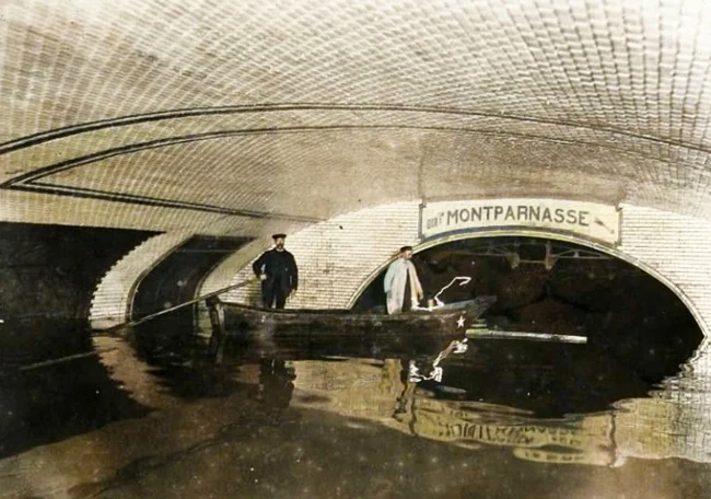 В январе 1910 года, в результате разлива Сены, Париж на несколько недель превратился в Венецию. Под водой оказались площади, улицы, вокзалы и станции метрополитена. С обычного транспорта парижане пересели на лодки и плоты. ![]()