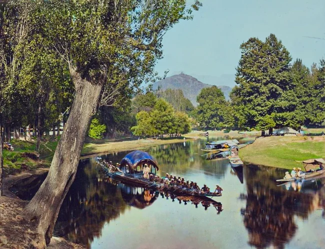 Лодка на канале. Кашмир, Индия, 1868 год.