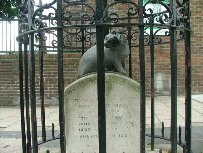История Дика Уиттингтона и его кота в стиле «из грязи в князи» не просто сказка, а часть лондонского фольклора. Сегодня у подножия Хайгейтского холма стоит каменный памятник Уиттингтону и его коту, где Дик присел и услышал знаменитый звон колоколов Боу в Восточном Лондоне: