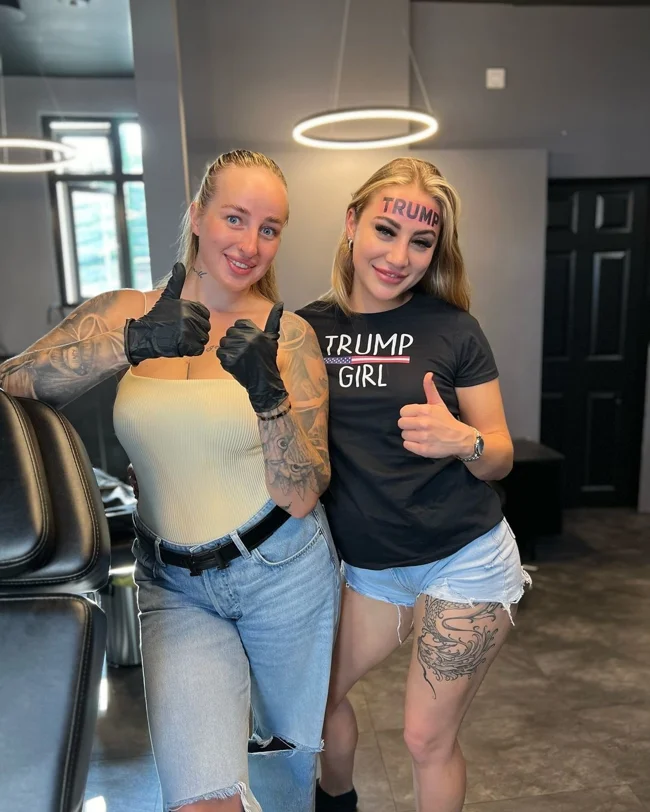Трамп на лбу: модель сделала тату в честь экс-президента США (4 фото + 1 видео)
