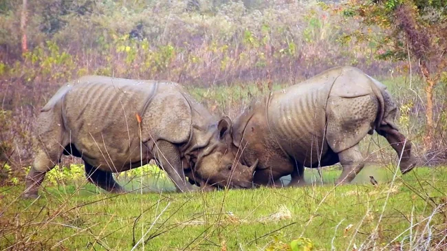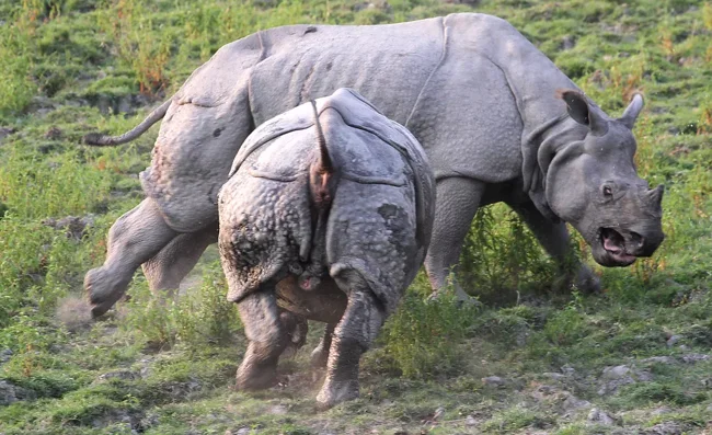 Ещё страшнее ситуация становится в сезон размножения. И без того злобные носоромужи свирепеют до неистовства. Отыскав по запаху даму сердца, претенденты на рог и сердце устраивают кровавые баталии. Причём раны они друг другу наносят зубами! К сожалению для популяции, нередко такие разборки заканчиваются смертью проигравшего. Драки между самцами — одна из самых частых причин смерти среди индийских носорогов в принципе.