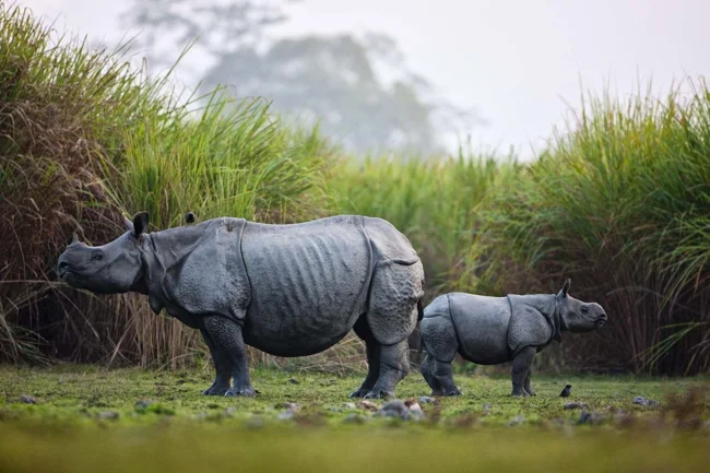 Беременность у индийских носорожих длится около 16 месяцев. И после такого долгого ожидания на свет появляется всего один малыш! В воспитание потомства вкладывается только мать, посвящая следующие 4 года своей жизни исключительно детёнышу. Порой молодняк остаётся с мамой и дольше, предпочитая одиночеству дружную семейную группу.
