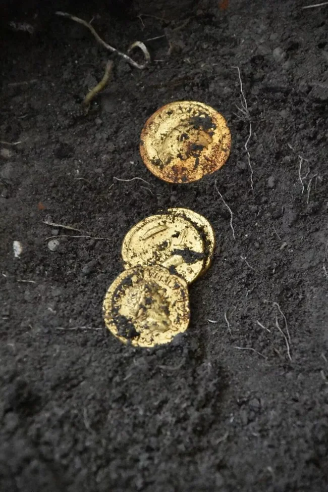 Рядом с женщиной были найдены золотые, серебряные и бронзовые монеты, а также жемчужные серьги и другие драгоценности.
