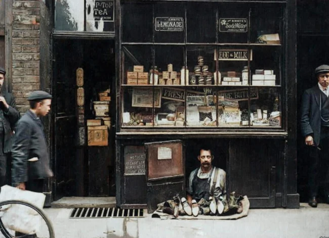 Самый маленький обувной магазин в Лондоне, 1900 год.