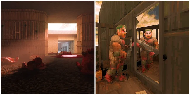 Итак, в игру добавили трассировку лучей, немного подкорректировали цветопередачу, объёмное освещение, тени, отражения, воду, а также реалистичную симуляцию крови. Кроме того, он заменяет все 2D-спрайты на воксели, благодаря чему противники и предметы получают трехмерный вид. Ещё одна фишка - мод можно запустить на HDR-мониторах.