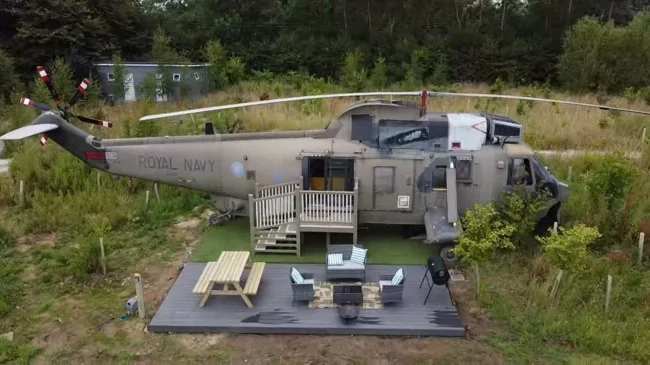 Мужчина сделал из старого вертолета роскошный дом и "посадил" его возле озера (6 фото + 1 видео)