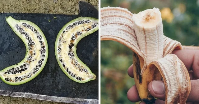 Первые бананы появились около 7000 лет назад в Юго-Восточной Азии. Прежде чем стать кремовым, сладким фруктом, в нём были крупные семена, которые занимали большую часть пространства.