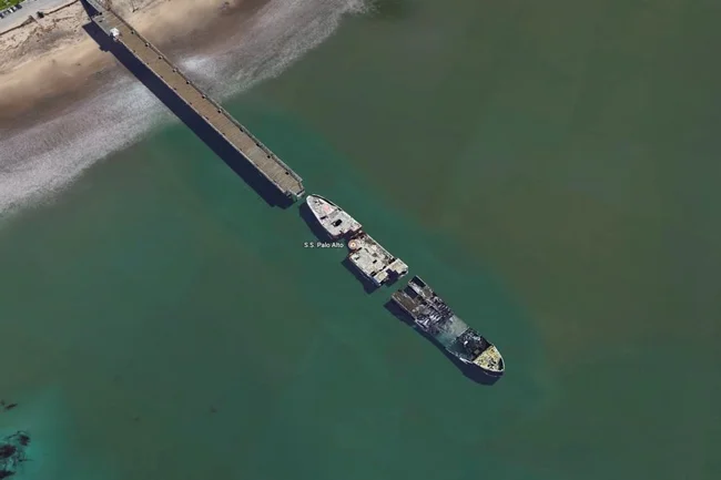 Этот бетонный танкер был создан для Первой мировой войны, но война закончилась раньше, чем он успел вступить в бой. Во время войны возникли опасения по поводу нехватки стали, поэтому было решено построить 24 новых корабля из железобетона. После постройки в Окленде, SS Palo Alto был перевезен в Аптос, Калифорния, в 1929 году. В 1930 году к судну был построен пирс, и оно стало популярным туристическим объектом, а также экологической проблемой, которую решили в 2006 году. Корабль продолжает разрушаться, и в 2017 году шторм оторвал его корму.