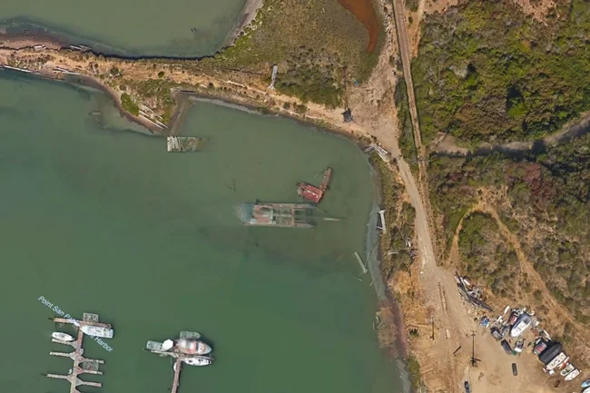 Воды вокруг Окленда и Сан-Франциско полны гниющих обломков кораблей. Этот находится в заливе Сан-Леандро, недалеко от международного аэропорта Окленда.