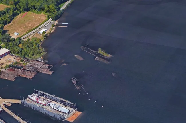 "Случайный морской музей", как называет его один морской журнал, — это кладбище лодок на берегу южного Статен-Айленда, Нью-Йорк. Оно было основано в 1930-х годах Джоном Дж. Витте. Витте не разбирал ни одного судна, если у него не было покупателя. Таким образом, лодки продолжали накапливаться, и вскоре у компании Witte Marine Equipment Co. было больше кораблей, чем она могла разобрать. С тех пор затонувшие суда стали средой обитания для подводных морских организмов. Экологические законы требуют, чтобы сотни корпусов кораблей оставались нетронутыми в этом месте, которое теперь известно как "Донжонская переработка".